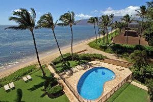 Maui Vacation Rental Kihei Beach is a moderately sized six story beachfront property located in North Kihei. It offers sweeping views of Kahoolawe, Molokini and the dazzling Pacific Ocean and a friendly casual atmosphere. Fronting the property is Sugar Beach, well known for it’s romantic sunsets, great swimming, miles of unspoiled strolling beach and seasonal whale watching. Kihei Beach offers central air conditioning, oceanfront pool area, gas barbeques, laundry facilities and free parking. The interiors include fully equipped kitchens, cable television, free local phone service, private lanais, complimentary high-speed internet service and luxury linens supplied directly by Ali’i Resorts. * Minimum stay requirement of 10 nights may apply for holiday (Christmas/New Years) periods.