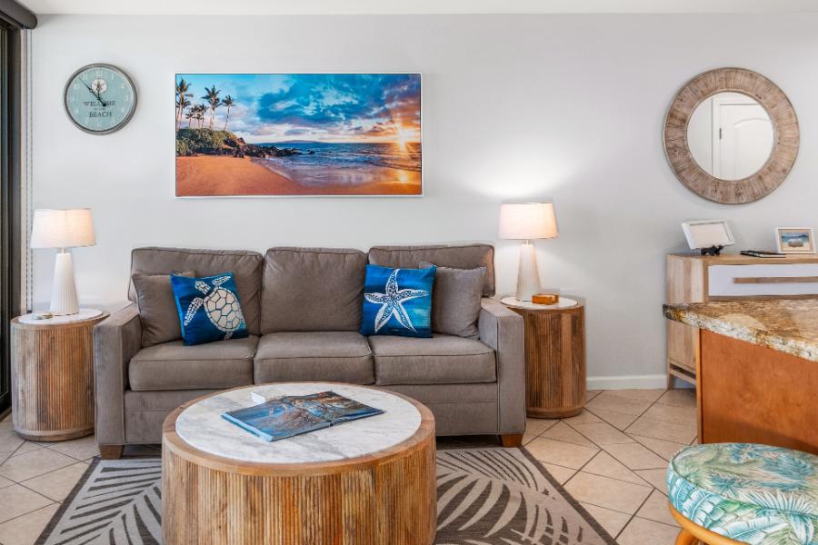 Step into the serene beauty of Maui with a stay at Kihei Surfside #310. This 1-bedroom, 1.5-bathroom condo offers stunning oceanfront views from the third floor and a comfortable island-inspired interior perfect for couples or small families. With updated split-duct air conditioning and a spacious layout, it’s a welcoming escape along South Kihei’s scenic shoreline.