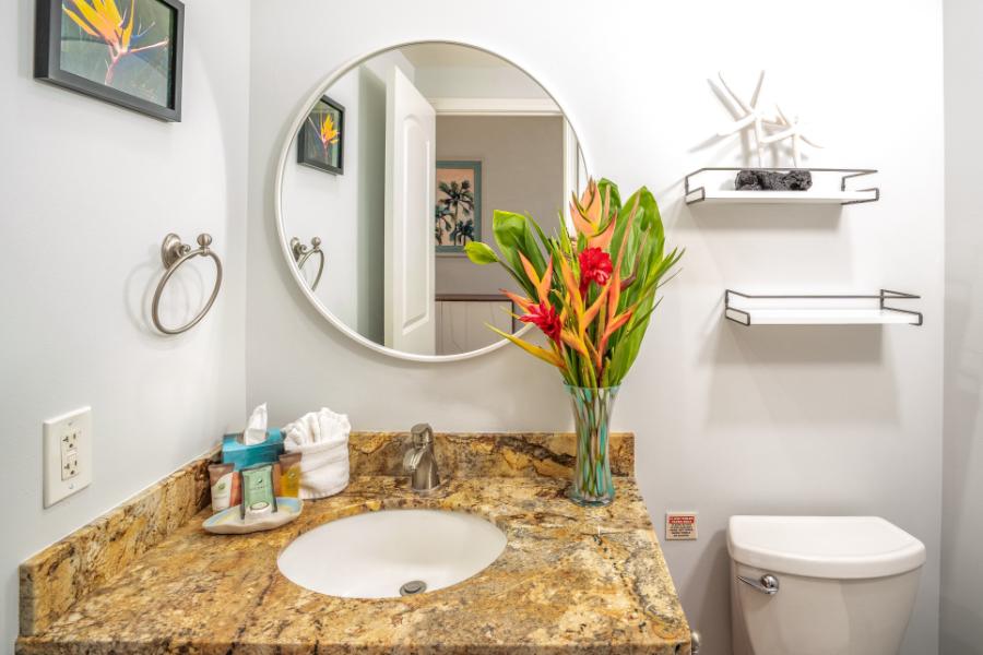 - A welcome kit with a starter supply of toilet paper, tissue, bar soap, paper towels, dishwashing soap, and spare trash can liners. Alii Resorts does not replenish these items.