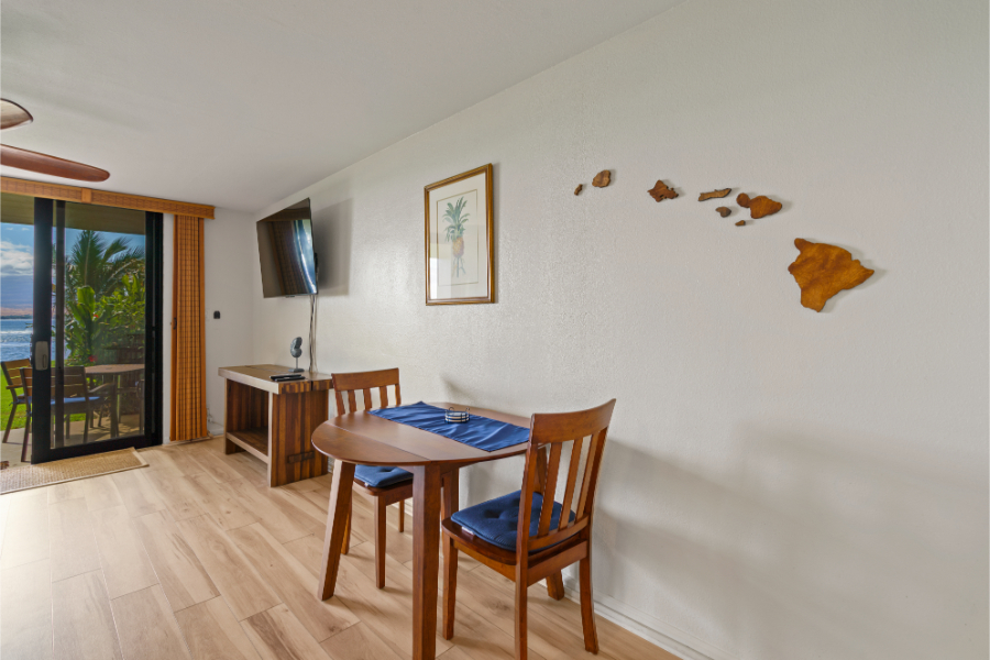 Welcome to Ma'alaea Kai #102, a beautifully updated 1-bedroom, 1-bathroom ground-floor condo offering peaceful oceanfront living with modern comforts. This inviting retreat features a private lanai just steps from the ocean, tasteful interior finishes, and air conditioning in the bedroom to ensure a restful stay. Centrally located between Kihei and Lahaina, Ma'alaea Kai provides a serene setting with easy access to all of Maui’s most sought-after attractions.