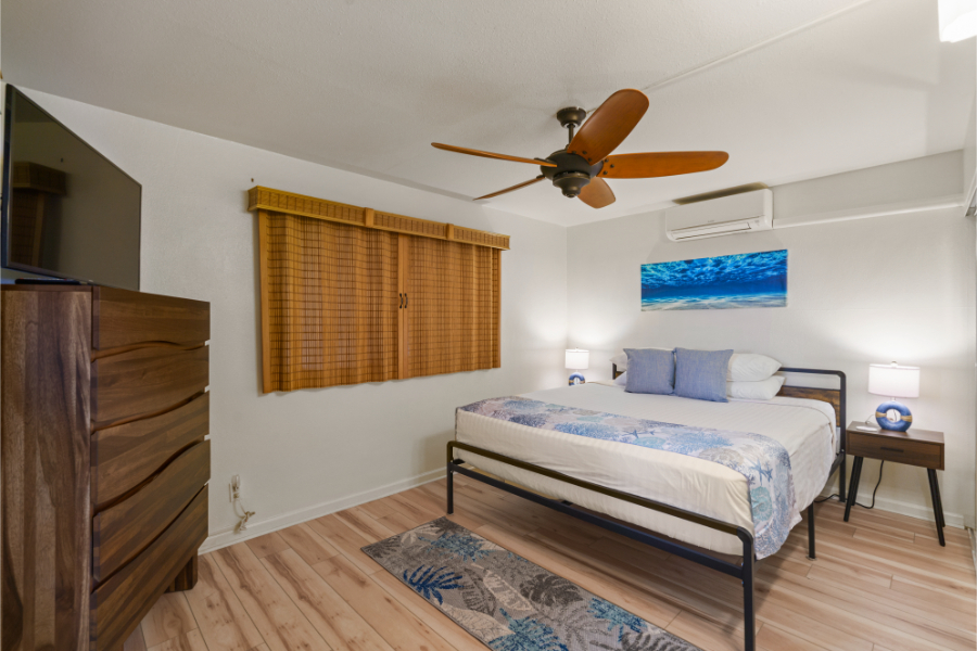 • Bedroom with comfortable king bed and air conditioning