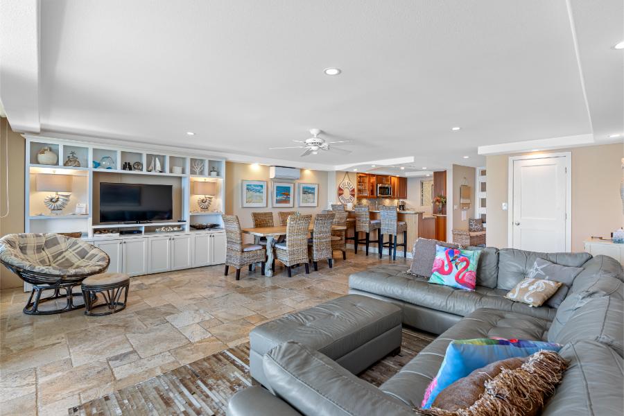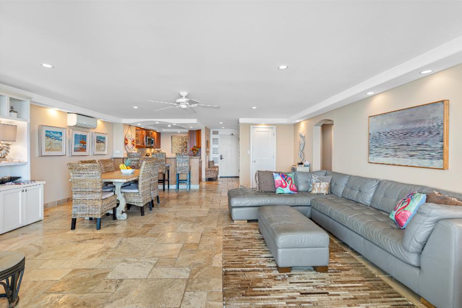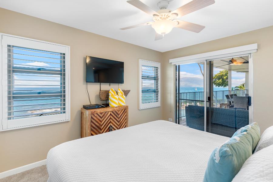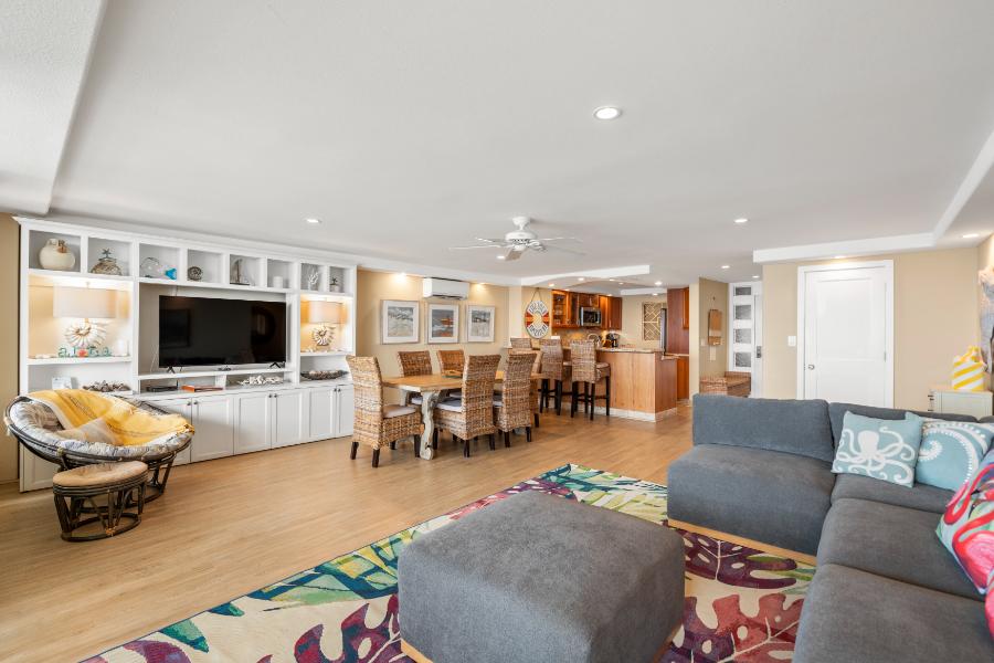 Royal Mauian #218 is a rare find – a spacious three-bedroom, two-bathroom corner unit that combines luxury, comfort, and panoramic oceanfront views. Recently remodeled with exquisite attention to detail, this condo is designed to host families or groups in style. With split-duct air conditioning, upgraded interiors, and a large private lanai, guests will enjoy one of the most desirable accommodations in South Kihei.