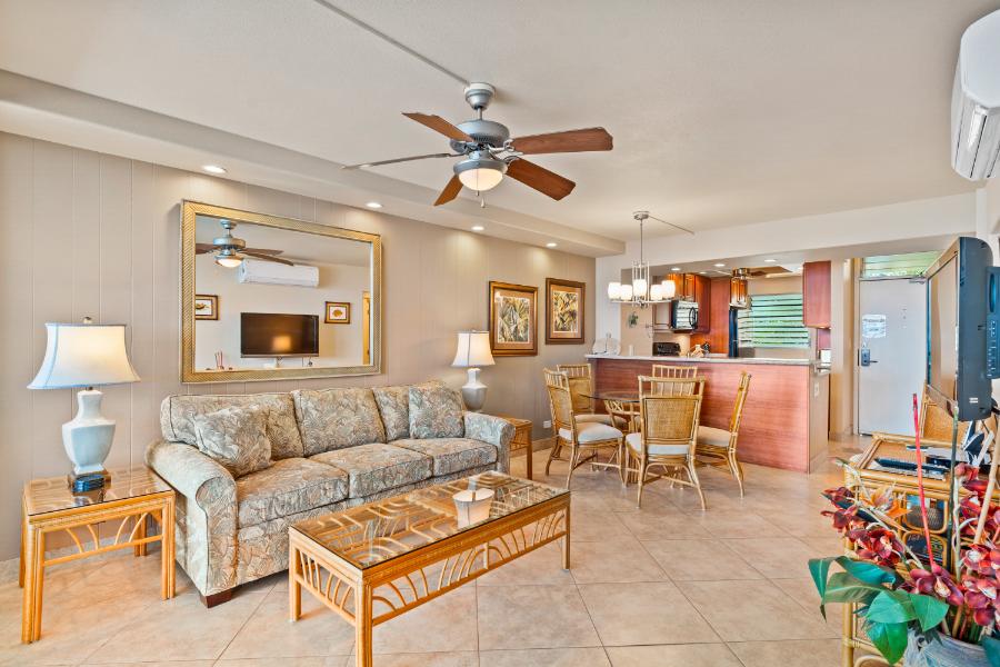Royal Mauian #317 is a beautifully upgraded two-bedroom, two-bathroom condo offering the perfect blend of modern comfort and breathtaking oceanfront scenery. With split-duct air conditioning, a fully remodeled interior, and spectacular views of Maui’s coastline and the neighboring island of Lana‘i, this retreat is designed for relaxation and enjoyment. From your private lanai, watch sea turtles in the surf below, enjoy seasonal whale sightings, and toast to Maui’s famous sunsets.