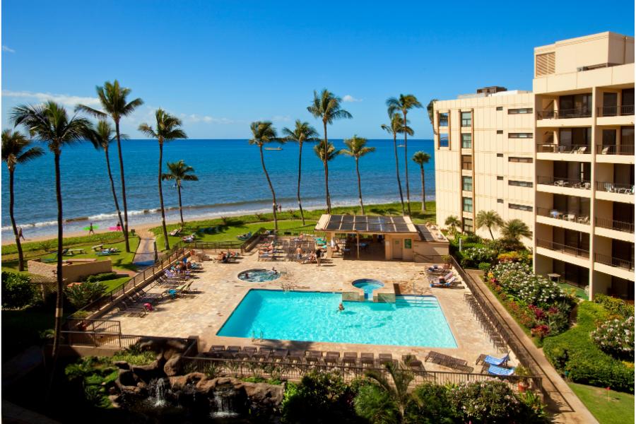 Welcome to our highly sought-after oceanfront corner unit on the 4th floor! With stunning views of the swimming pool, BBQ area, and the expansive Sugar Beach stretching in both directions, this condo offers the perfect setting for your Maui escape.