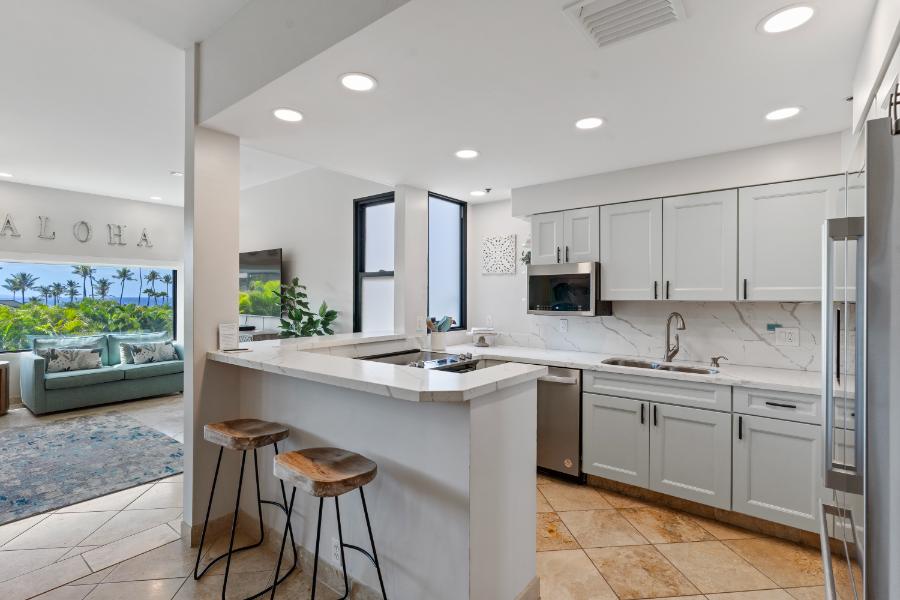 Wailea Elua #801 was fully remodeled in 2022 and 2024 with care and attention to detail. From the kitchen to the bathrooms, we’ve curated a space where guests can unwind, recharge, and enjoy the magic of Maui. We hope you’ll enjoy the spacious layout, high ceilings, and the relaxing lanai that offers both shade and sunshine. Whether you're sipping your morning coffee or watching the sunset after a day of adventure, we hope this becomes your favorite Maui escape.