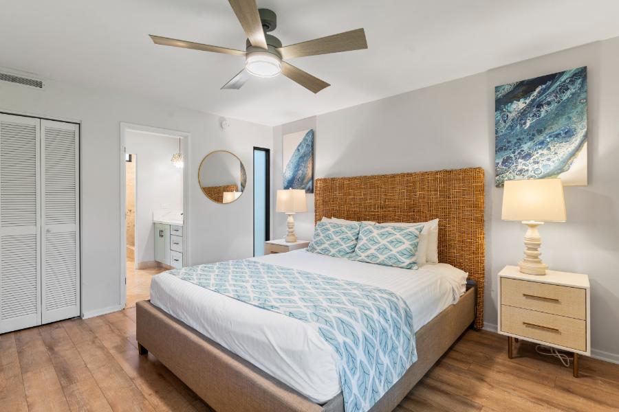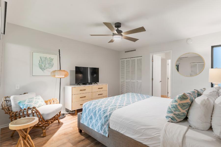 - Primary bedroom with king bed